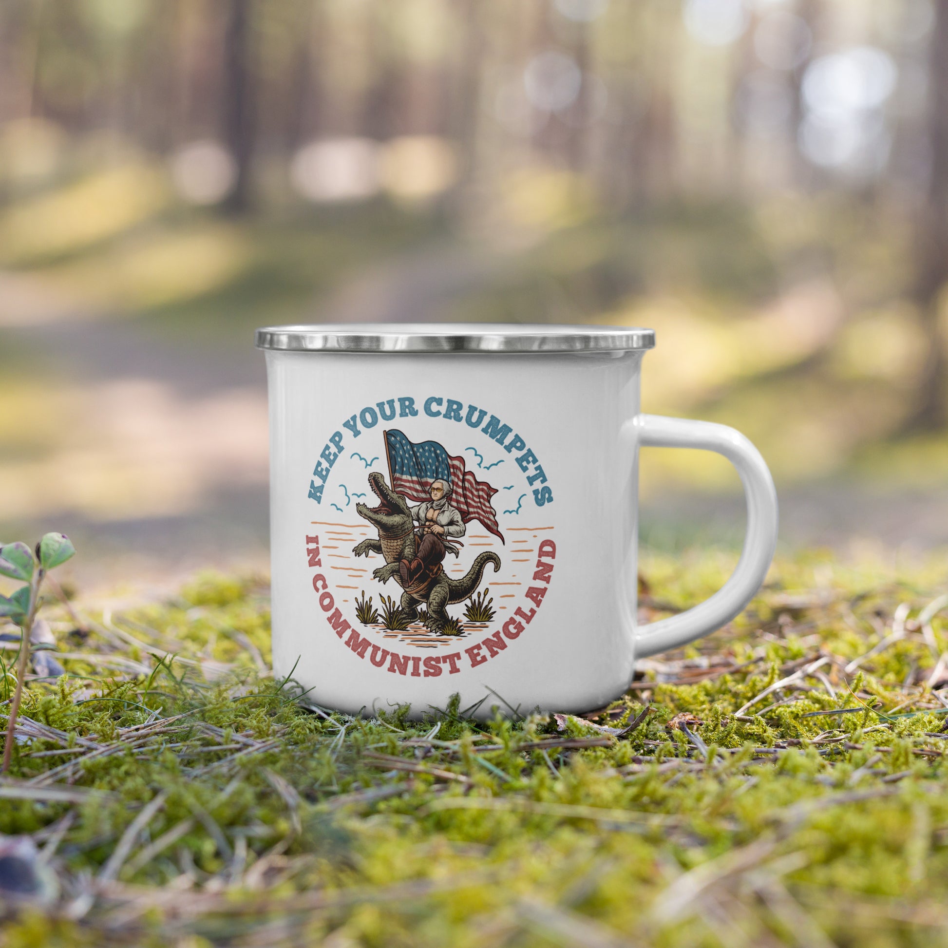 Start your day with a cup of freedom. Here in the Landadafree, I wake up each morning and smile at the beautiful visage of George Washington riding his alligator to defeat the British. This mug would strike fear in the heart of any Englishman, but America, it brings a swell of pride and joy with every sip. DO NOT MICROWAVE.